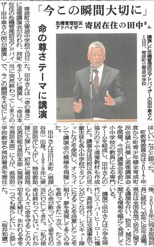 令和7年12月15日(月)に寄居町在住で東京消防庁特別救助隊、深谷市消防本部消防長を務め、現在は危機管理防災アドバイザーとして活躍されている田中章(たなか・あきら)さんを講師に招き、講演会を開催しました。