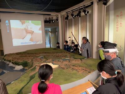 鉢形城ボランティアガイドの皆さんご協力のもと、あいにくの雨のため鉢形城歴史館内のみ