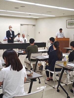 説明会では、教育長の挨拶に始まり、担当課・引率者の紹介、生徒の自己紹介、日程・持ち物の確認、注意事項等について説明を行いました。