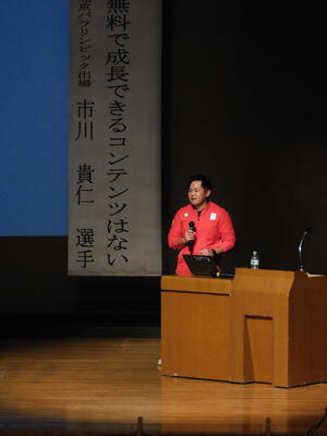 今年度は講師に寄居町出身 2022北京パラリンピック出場(スノーボード) 市川 貴仁 選手をお迎えし、中央公民館町民ホールで寄居町の小学校全教職員と中学校の保健体育科教職員を対象に開催しました。