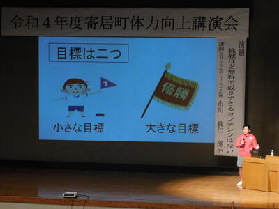 寄居町の児童生徒の体力を向上させるために必要なこと、先生方に意識してほしいこと、そして市川選手の今後の目標についてもお話を聞くことができました。