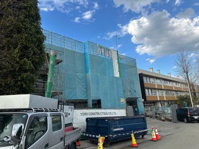 東校舎の工事が完了し、西校舎の工事が始まっています。