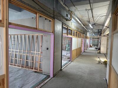 教室間の壁や廊下と教室の間仕切りが設置されました。
